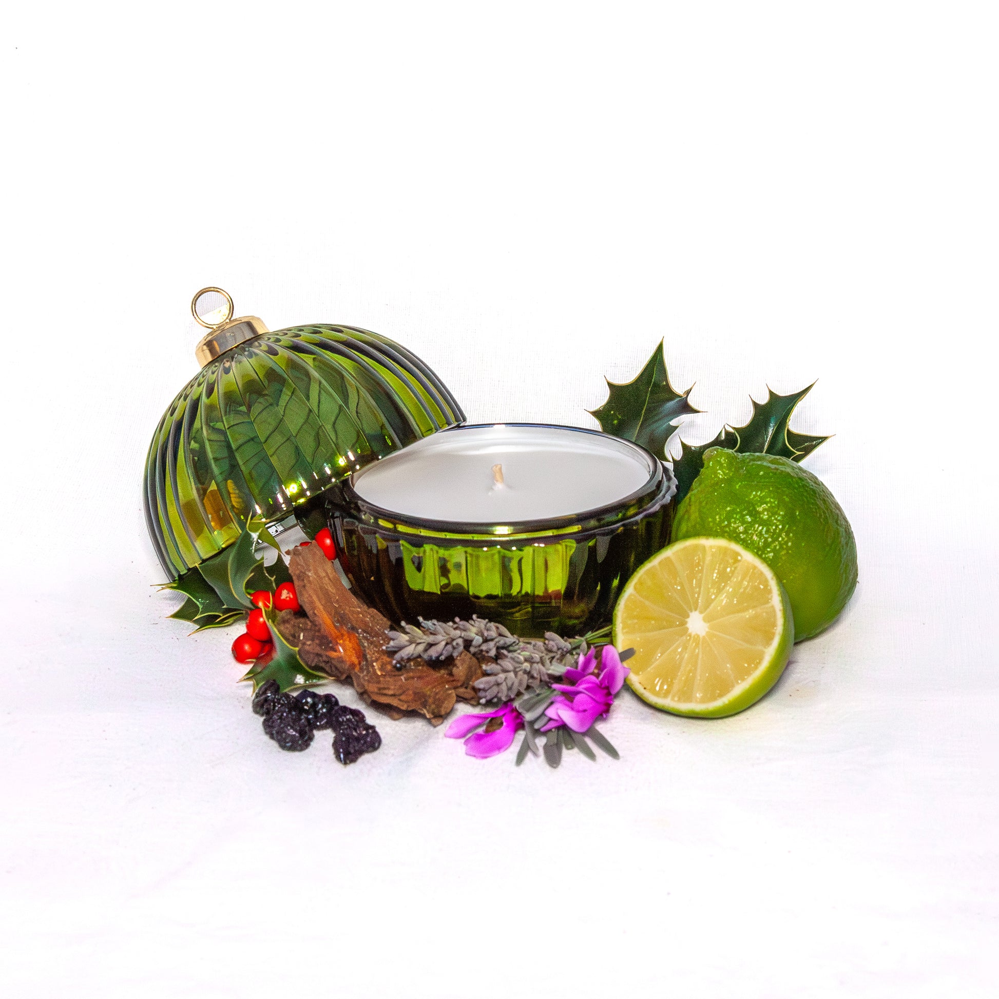 The Whispering Woods Green Christmas Bauble Candle